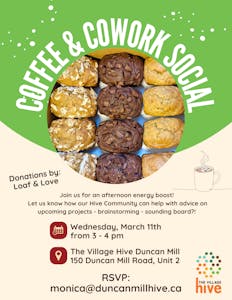 Welcome to The Village Hive Duncan Mill community. We are onsite on Mondays thru Fridays. Feel free to call/text 416-903-8063. Looking forward to getting to know you! Charlotte + Monica